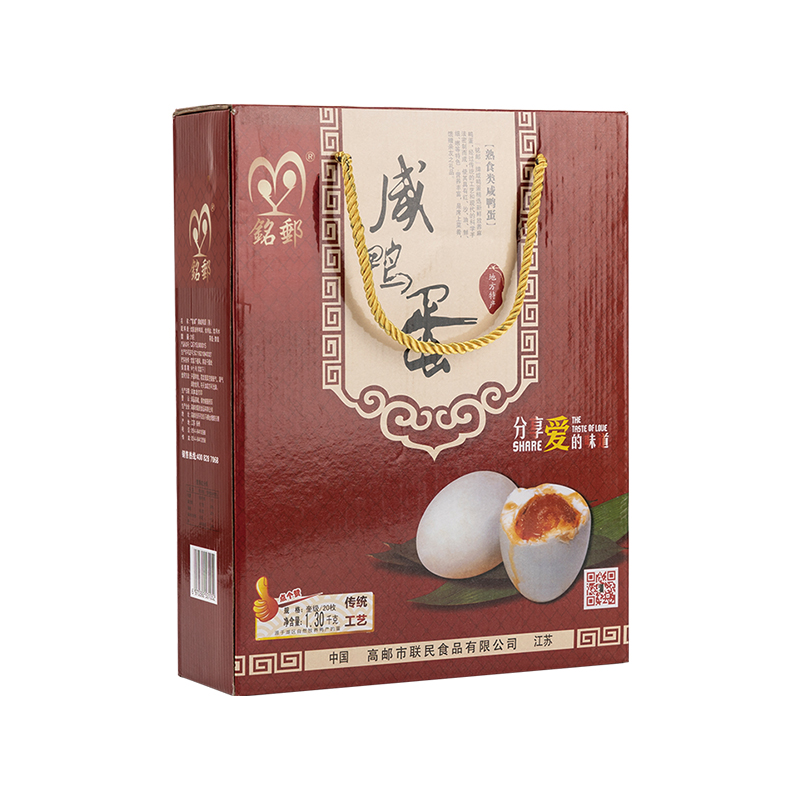 高郵市聯民食品公司成立于2012年,坐落在魚米之鄉,一蛋雙黃,好事成雙的鴨蛋原產地高郵,專注鴨蛋行業很多年,目前致力于三家知名上市食品企業OEM代加工、和南京、常州、安徽、蘇州、優質食品企業深度合作及自主品牌線下代理商和線上的業務模式,精心深度加工麻鴨咸鴨蛋,專業生產咸蛋黃,精心做蛋的其他多種產品,公司擁有資深的研發團隊,有系統的研究和質量控制中心,建設了有通風功能,高效殺菌的恒溫腌制車間,具有專業的大型蛋品生產設備,擁有8000平方米的生產車間,服務全國客戶超千萬枚的蛋制品,生產的“銘郵”牌系列蛋品選用當地優質的高郵鴨蛋為原料,采用傳統秘制工藝及現代加工技術恒溫腌制而成。長年供應,品種齊全。具體規格:55克、60克、65克、70克、75克、80克的咸鴨蛋及松花蛋,70克、80克、90克、100克以上的雙黃蛋及各種規格的咸蛋黃。希望各界伙伴和企事業單位共同就高郵蛋,攜手共贏!..